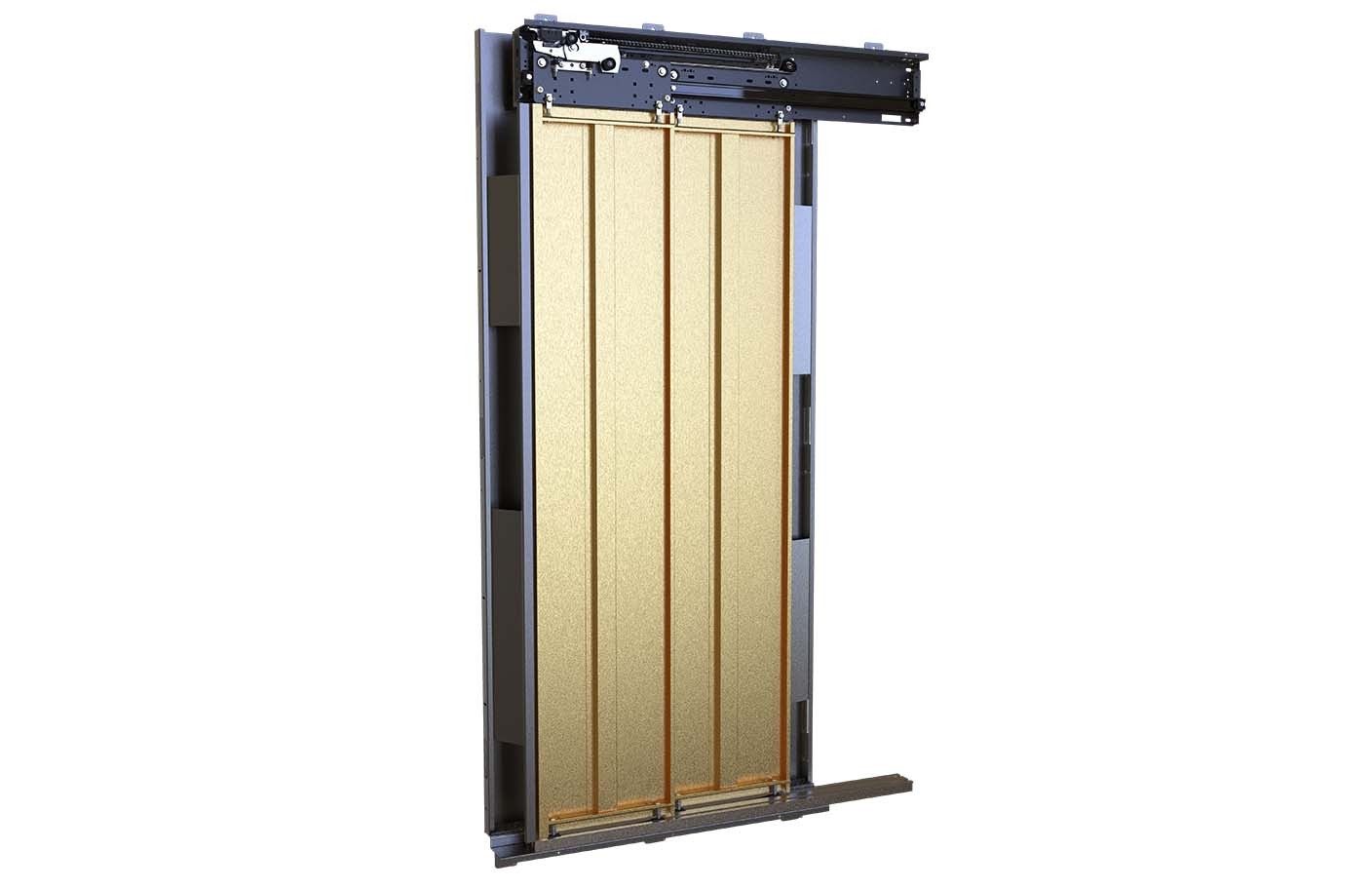 • دارای قرقره ی مخصوص ریل طراحی شده ی دو لایه همراه با یک لایه ی با پوشش انعطاف پذیر به منظور تامین نرمی حرکت درب ها در سرعت بالا